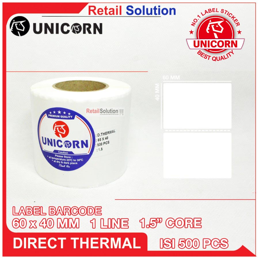 Keunggulan Label Unicorn: 1. Bahan material dari Brand UPM Raflatac / Avery Fasson. 2. Hasil Cetaknya bagus dan merata 3. Bahan lebih tebal dibanding non brand. Gap mudah terdeteksi oleh sensor printer. Tidak menyebabkan label banyak terbuang. 4. Lem kuat dan Rata. 5. Top Coated, Coating sudah BPA Free. Aman untuk Manusia, Label makanan/ minuman, Obat dll. 6. Coating tidak merusak Printhead. 7. Top coated dengan Anti Air, Anti Gores, Anti Minyak ( Khusus Varian Thermal)