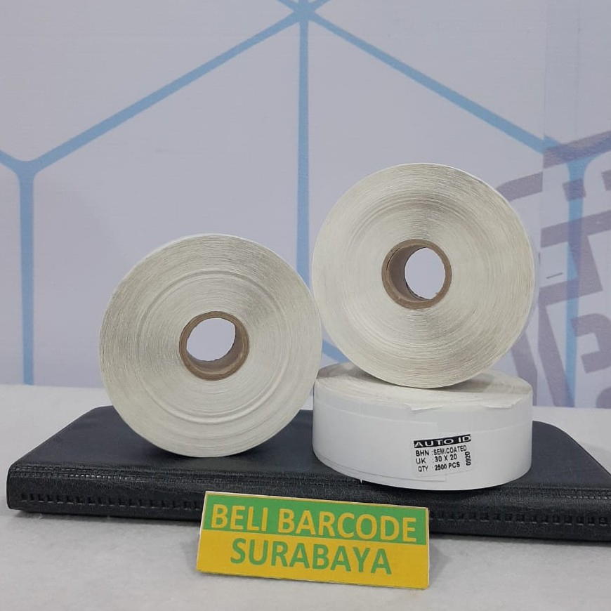 Informasi Produk : - Bahan : Semicoated - Lebar : 30 mm - Tinggi : 20 mm - Baris : 1 Line - Isi : 2.500 pcs / roll - Core : 1 Inch (Kecil) - Perforasi / Ada Garis Sobek - Gap Kanan Kiri Atas Bawah - Harga diatas tercantum untuk 1 Roll label - Berat diatas tercantum untuk 1 Roll label