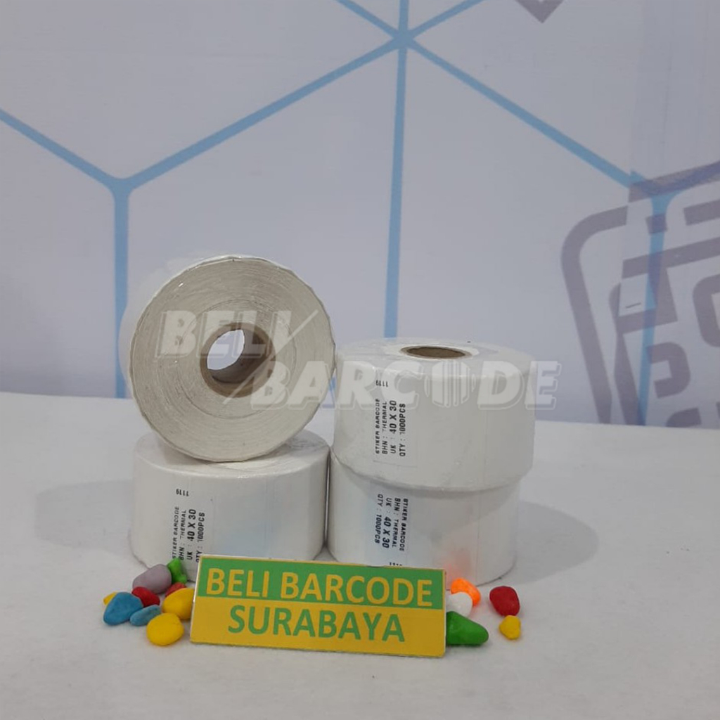 Informasi Produk : - Bahan : Thermal - Lebar : 40 mm - Tinggi : 30 mm - Baris : 1 Line - Isi : 1.000 pcs / roll - Core : 1 Inch (Kecil) - Perforasi / Ada Garis Sobek - Gap Kanan Kiri Atas Bawah - Harga diatas tercantum untuk 1 Roll label - Berat diatas tercantum untuk 1 Roll label