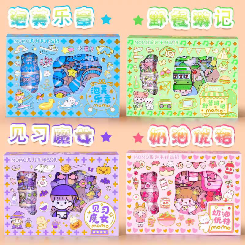Sticker Momo Set Roll Washitape Isi 4 Roll + 10Lembar Stiker