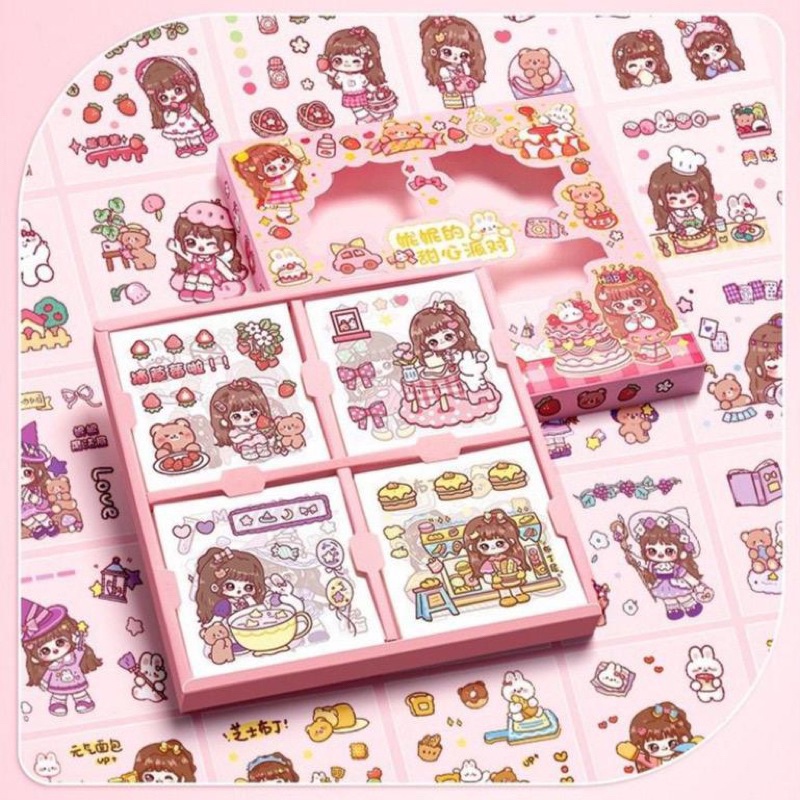 Stiker isi 100pc PVC Waterproof ada 4 macam model NINI Pink, Magenta, Purple and Blue cocok buat kalian yang suka koleksi stiker dan yang suka membuat jurnal.