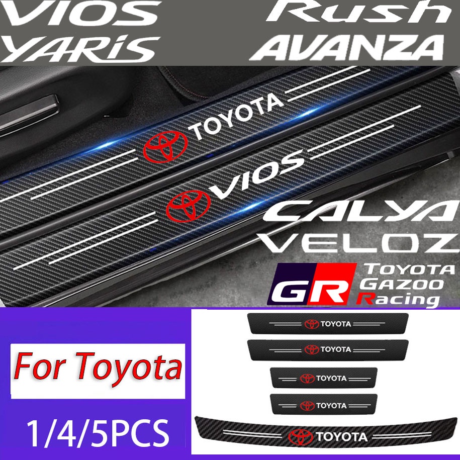 1/4/5 Pintu Mobil Sill Sisi Anti Gores Pelindung Stiker Ambang Ambang Stiker Kulit Karbon Untuk Toyota Vios Yaris Rush Veloz Fortuner Innova Raize Corolla Calya Avanza GR Olahraga