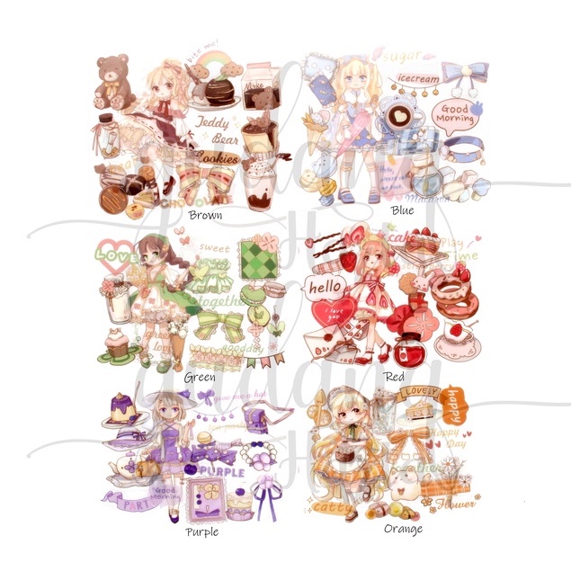 Detail Stiker Pet Tea Girl Stiker Motif Gadis Dan Makanana DIY GH 303619