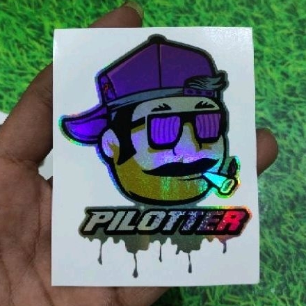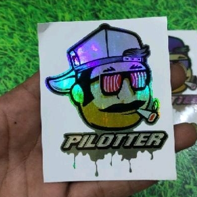 stiker piloter bahan hologram jenis stiker print & cut laminasi bahan berkualitas daya rekat kuat dan tahan air harga untuk 1pcs ukuran tinggi 7cm proposional silahkan kak