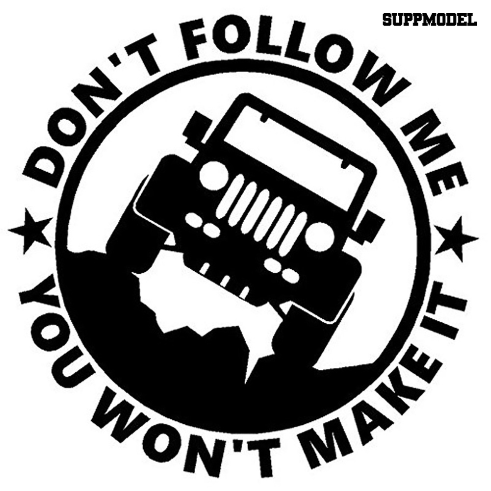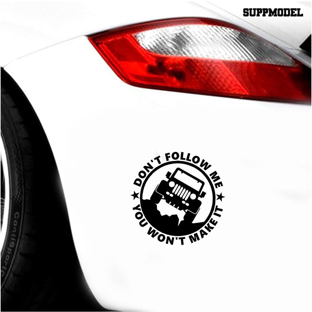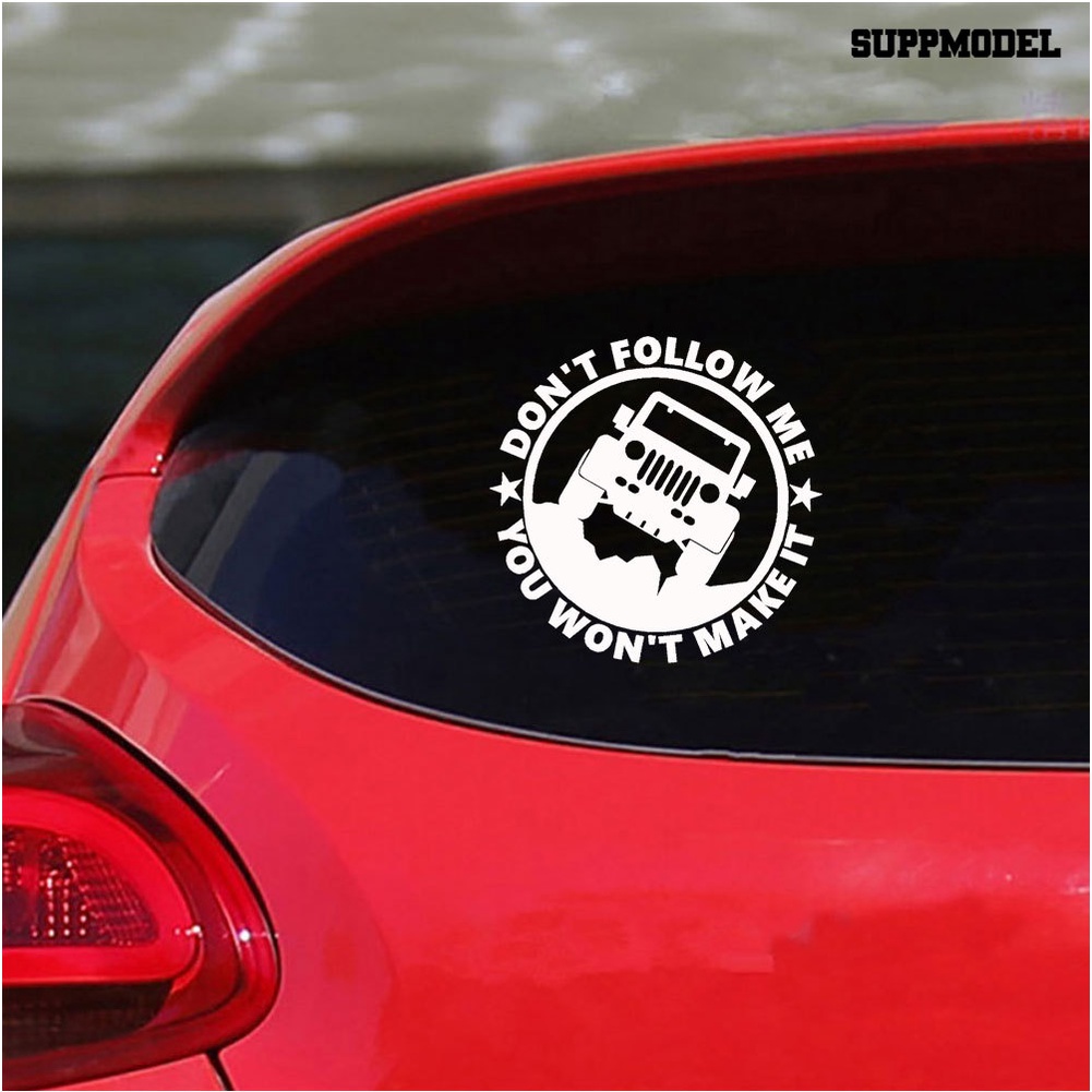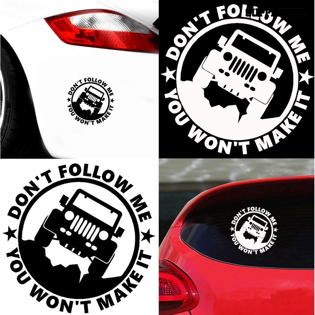 Spesifikasi: "Jangan Ikuti saya, Anda tidak akan berhasil" huruf dan desain mobil off-road, lucu dan unik. Tahan air dan perlindungan matahari, mendekorasi mobil Anda untuk jangka panjang. Kelengketan tinggi, mudah menempel dan dilepas.