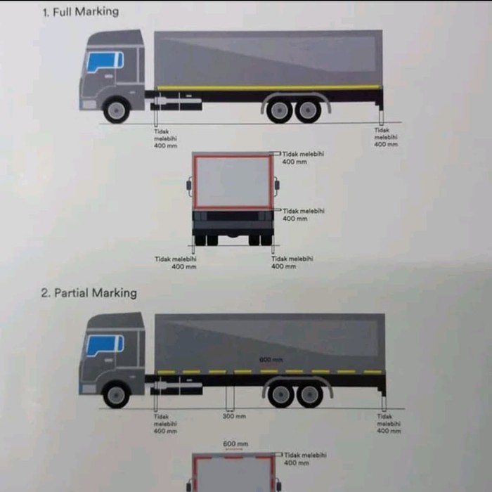 Untuk Belakang Mobil : Wajib Warna MERAH Untuk Samping Kiri Kanan Mobil : Kuning / Putih.