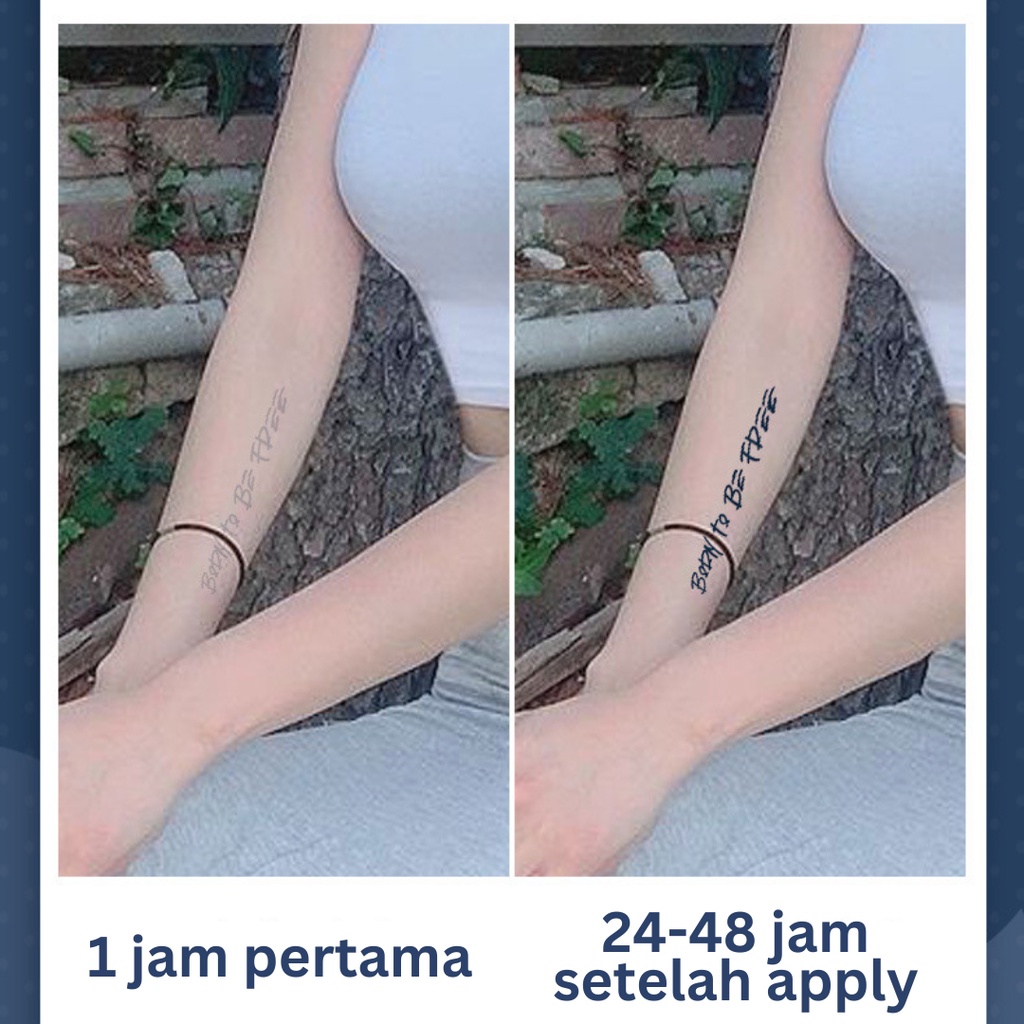 Cara Pakai: 1. Potong motif yang diinginkan, lalu lepas lapisan plastik filmnya dan tempel ke kulit 2. Basahi kertas dengan sedikit air (bisa diusap dengan kain/kapas yang basah, bisa juga langsung diberi percikan air secara langsung) 3. Usap-usap kertas yang sudah basah sekitar 10-30 detik, sesekali intip tatonya,jika sudah menempel semua, silakan lepas kertas tatonya. 4. Setelah apply tato, usahakan tidak terkena air minimal 3-5 jam pertama, Tinta tato akan berubah menjadi semakin gelap sekitar 24-48 jam setelah apply 5. Hasil tato paling maksimal setelah 48 jam (warnanya bisa hitam/biru tua tergantung kondisi kulit tiap orang)