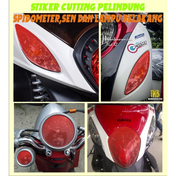Detail stiker variasi pelindung mika spidometer,sen dan lampu belakang motor fino