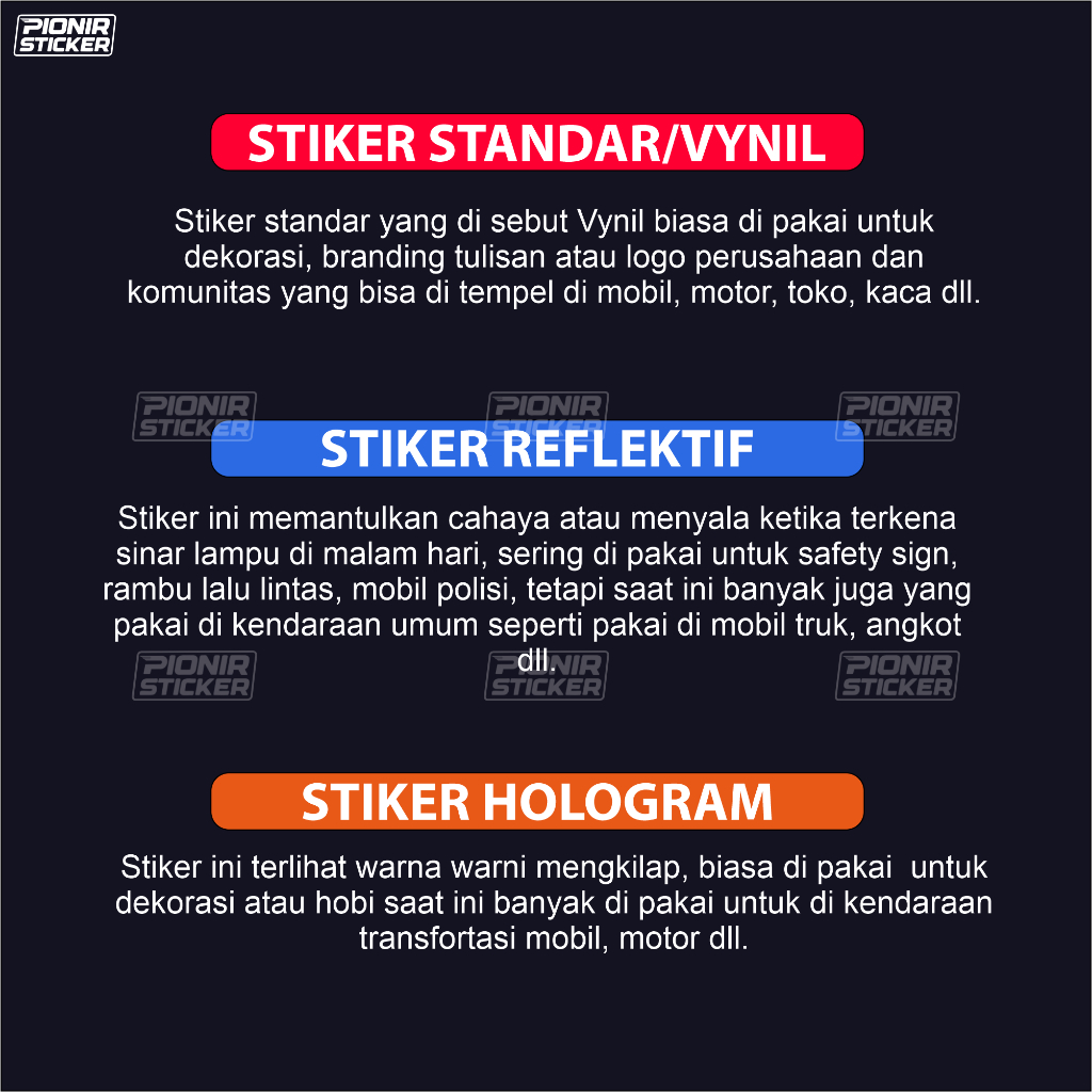 Mau model sticker yang lainya silahkan bisa liat di produk toko kami Bisa custom sticker susuai keinginan juga Packing aman menggunakan pipa carton Terimakasih sudah mampir di toko kami selamat berbelanja