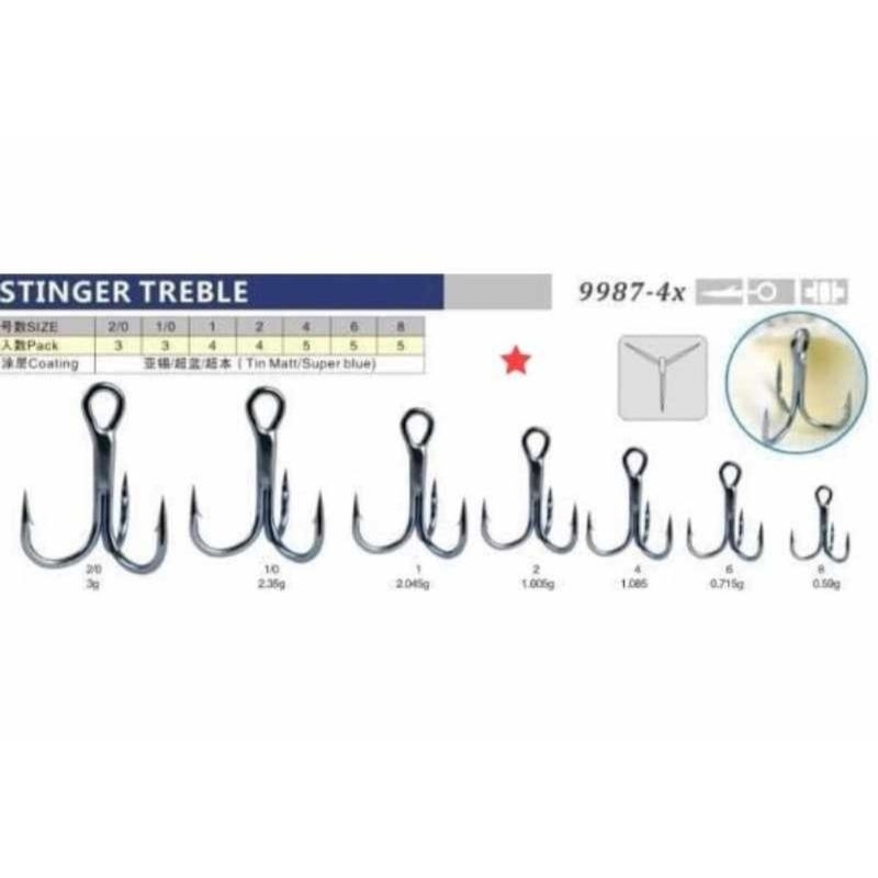 Olahraga & Outdoor > Alat Pancing > Kail Pancing > STINGER 9987 - X4 TREBLE HOOK STRONG