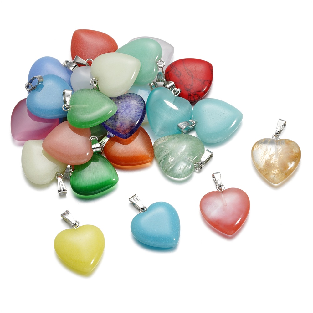 Aksesoris Fashion > Aksesoris Tambahan > Liontin > Stkunkka 20mm Liontin Hati Permata Alami, Liontin Berbentuk Hati Batu Kristal Dengan Gesper Sambungan Stainless Steel Untuk Membuat Perhiasan DIY