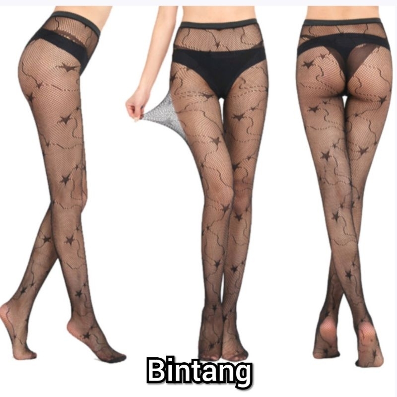 Detail Stoking Net Stocking Celana Pantyhose Wanita Jaring Motif Silang