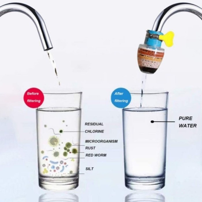 Penyaring keran air ini berfungsi untuk menyaring kotoran-kotoran berupa benda dan juga micro organisme yang terdapat dalam air keran. Lindungi keluarga Anda dari bahaya air kotor yang dapat menimbulkan penyakit.