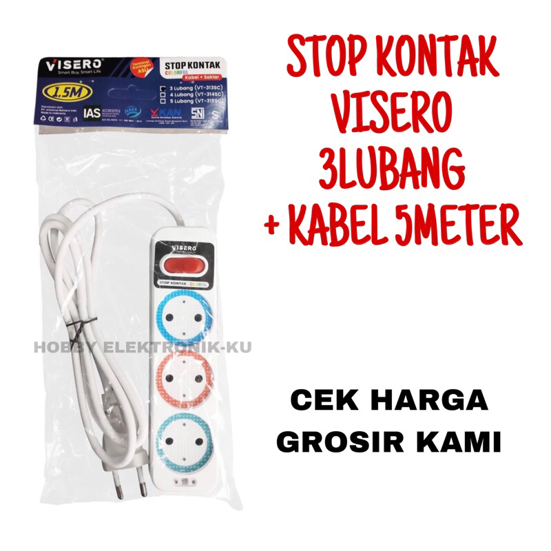 Elektronik > Kelistrikan > Kelistrikan Lainnya > STOP KONTAK COLORFUL VISERO 3LUBANG + KABEL 5METER