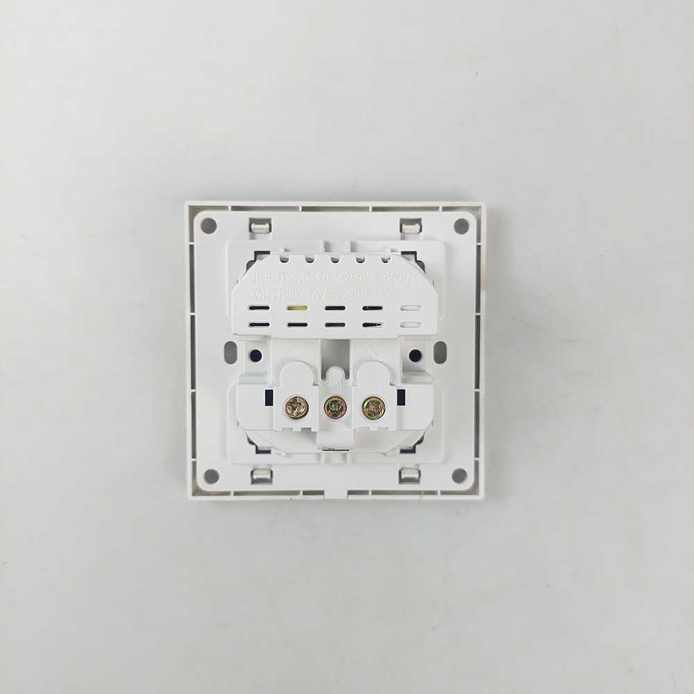 Spesifikasi Tipe Plug Listrik EU Jumlah Port 2 Port USB Voltase Soket: 110-250 V / 16 A USB: 5 V / 2.1 A Material PC Tahan Api Dimensi 86 x 86 mm