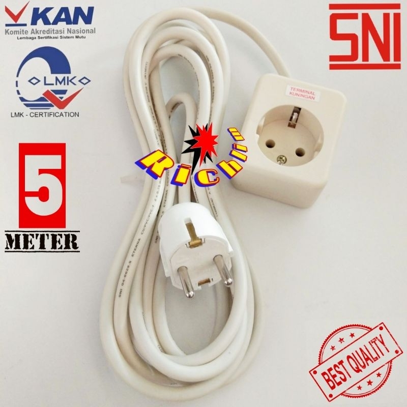 Detail STOP KONTAK KABEL UTICON 1 LUBANG + 5 METER KABEL ETETNA + STEKER ARDE BROCO/COLAKAN LISTRIK