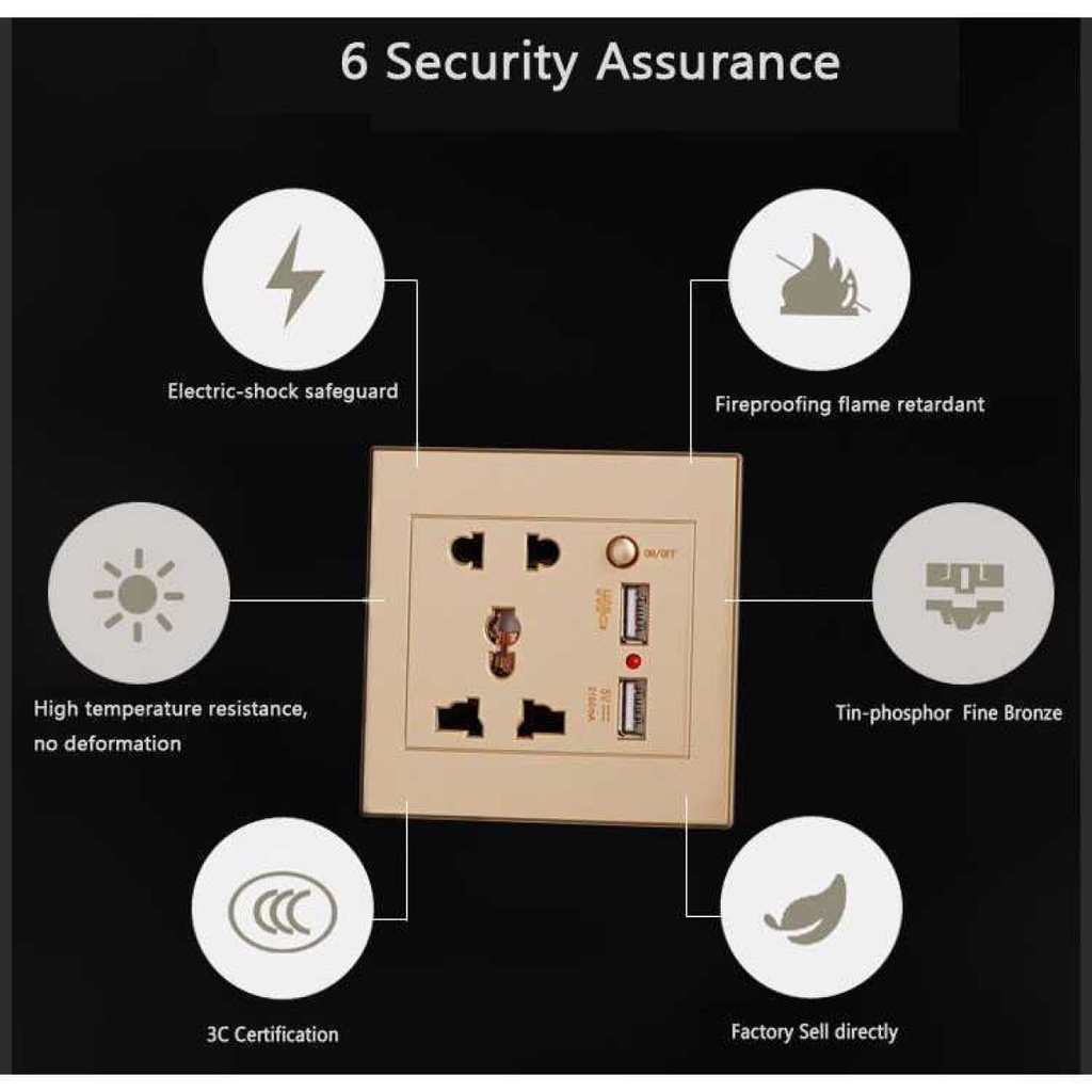 Colokan listrik dinding ini memiliki port universal antara UK, EU dan US plug. Selain itu, colokan ini memiliki 2 buah usb charger port yang dapat Anda gunakan untuk mengisi baterai gadget. Sangat cocok digunakan dirumah Anda karena keluarga Anda pasti memiliki kebutuhan tinggi akan port charger USB.