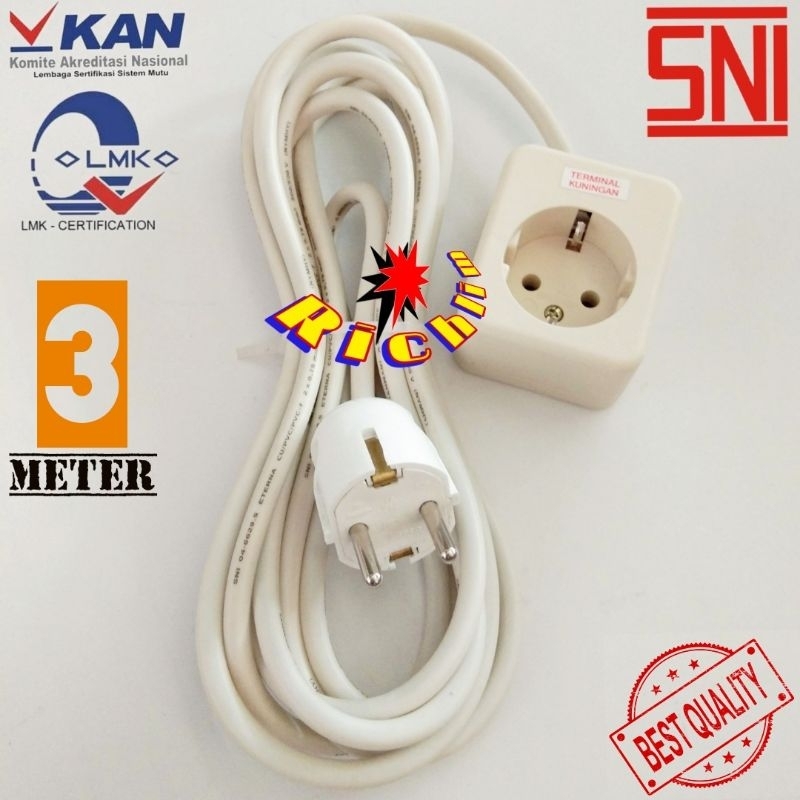 STOP KONTAK UTICON 1 LUBANG+3 METER KABEL ETERNA+STEKER ARDE BROCO/COLOKAN LISTRIK
