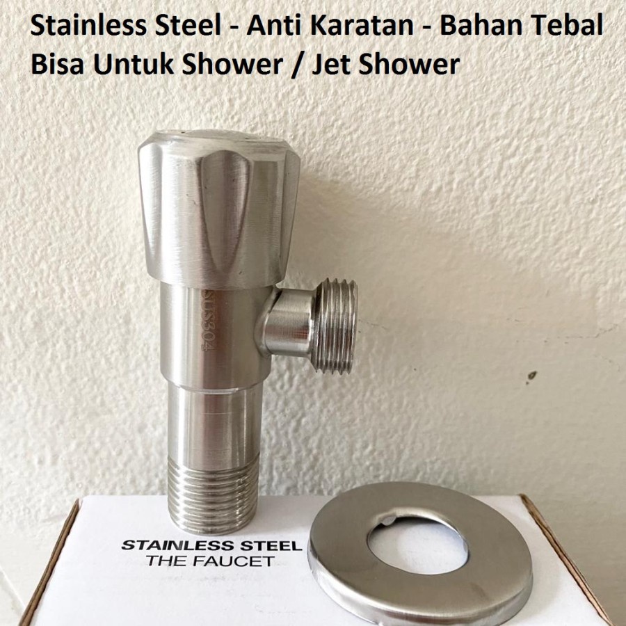 Detail Stop Kran Keran Air Tembok 1 Cabang L Single Jet Shower Closet SUS 304