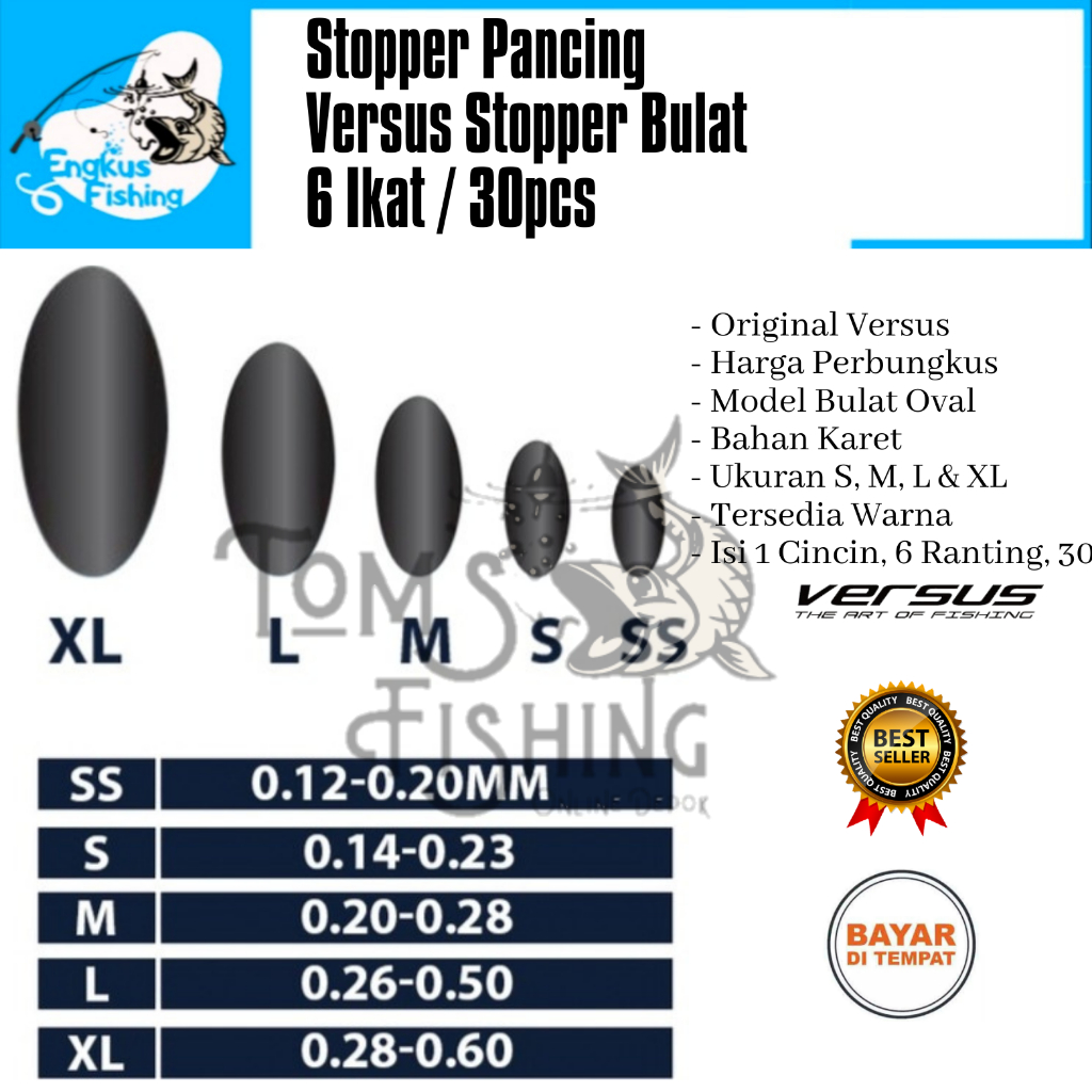 Detail Stopper Pancing Versus Bulat 30 pcs Hitam / Kuning Perbungkus ( S,M,L & XL) Murah - Engkus Fishing