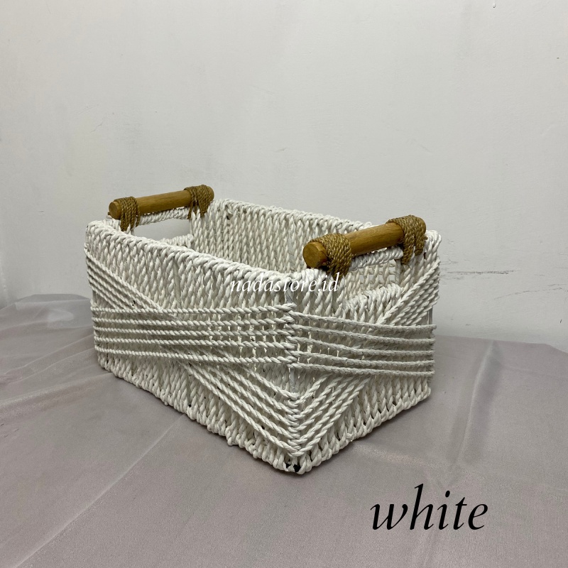 1 Keranjang Penyimpanan Tempat penyimpanan ini semua buatan tangan dengan tali kertas khusus. Setiap simpul membutuhkan waktu lama bagi pekerja kami untuk menganyam. Jadi ini adalah hadiah sempurna yang sepenuhnya buatan tangan.