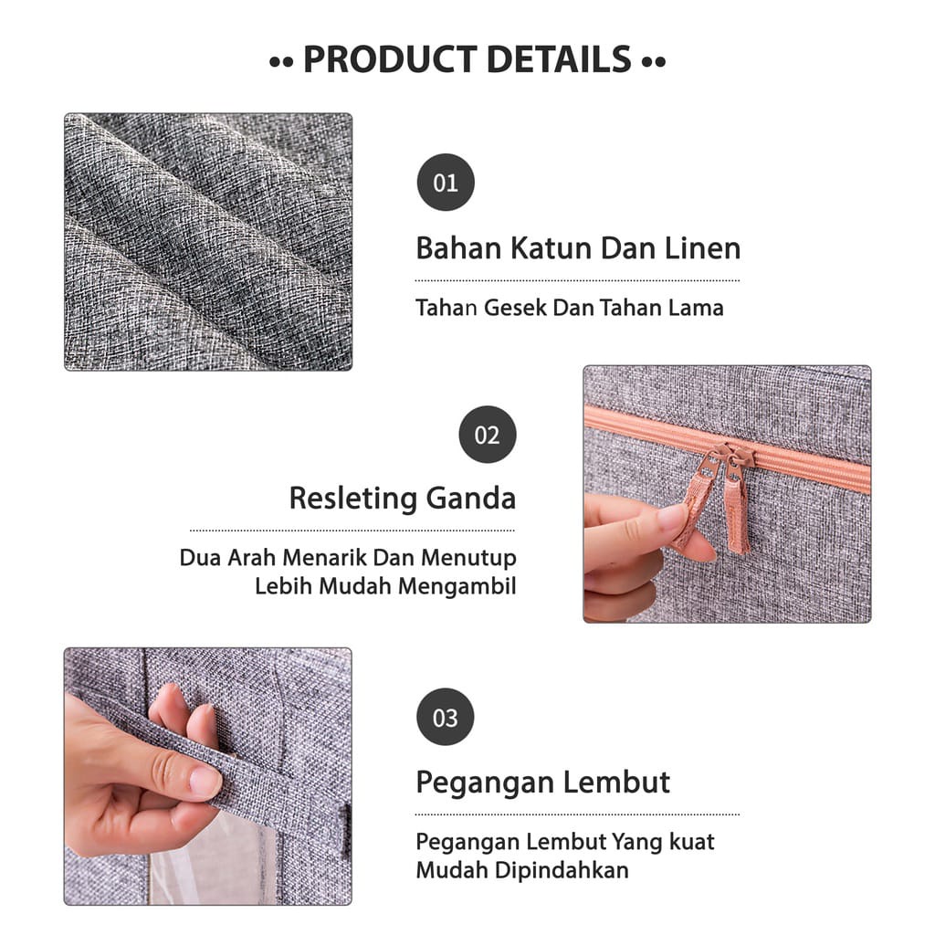 Satu box bisa menampung 40-50 pcs pakaian. Box bisa dilipat saat sedang tidak dipakai Tersedia banyak variasi