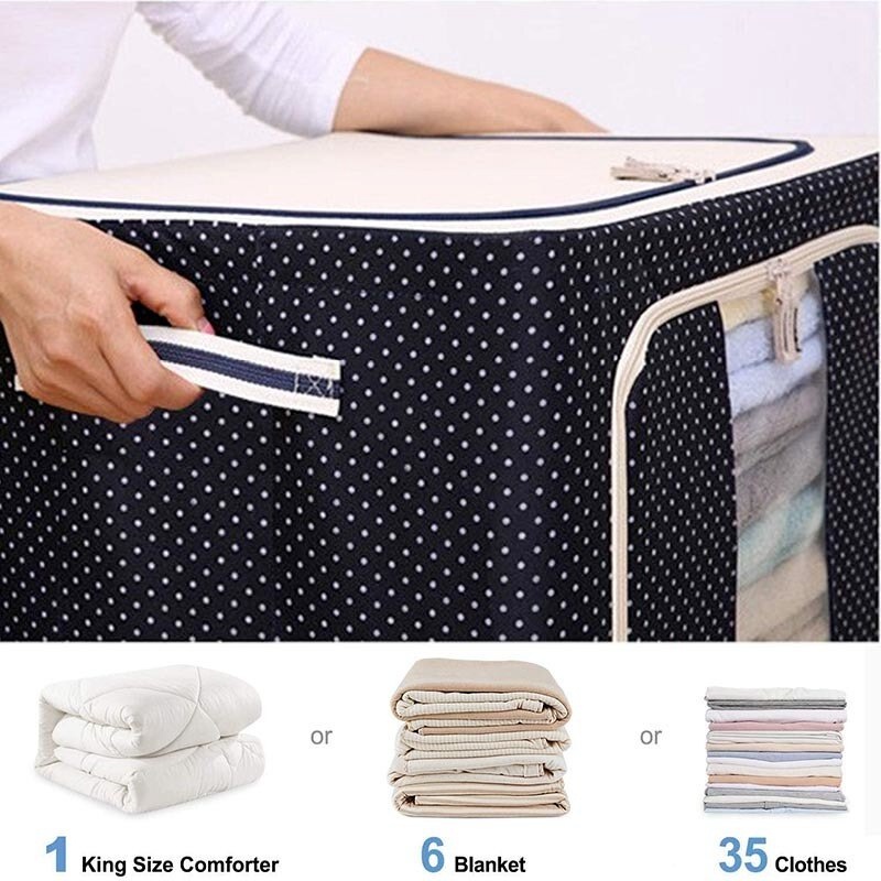 Detail Storage Box 66Liter Frame Baja Double Zipper Large Box 66L Penyimpanan Baju Bisa Lipat