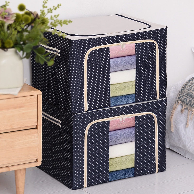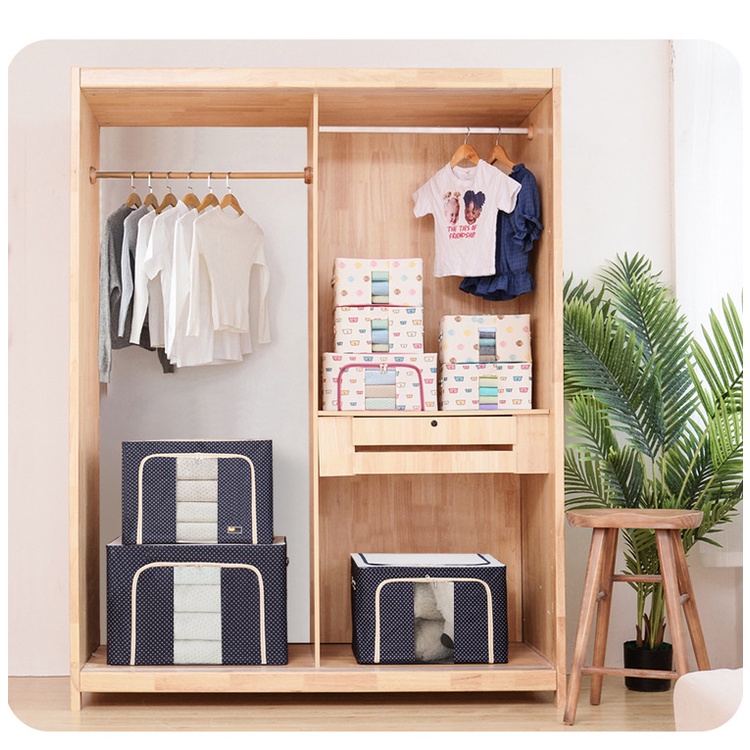 SPESIFIKASI: *Bahan Oxford Cloth Tebal Bahan Oxford Cloth Anti Basah, sehingga tidak perlu khawatir barang yang disimpan lama akan lembab karena sudah terlindungi bahan oxford tebal dari storage box