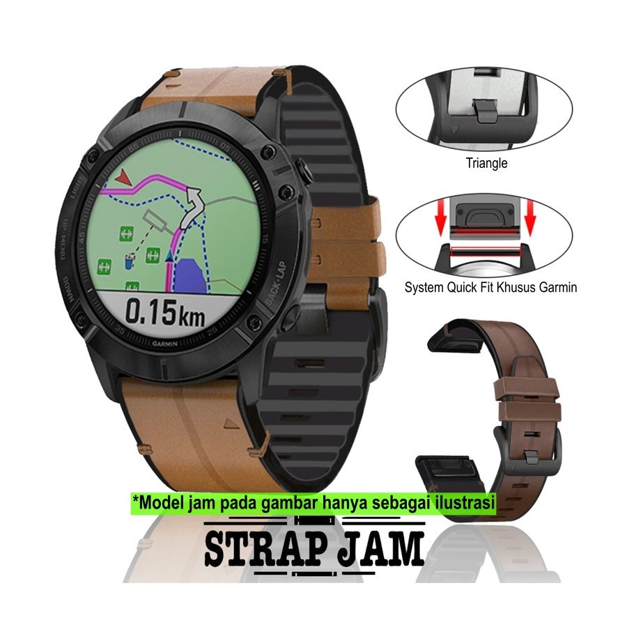 Detail Strap Garmin Instinct 1 2 Crossover - Tali Jam Quick Fit 22mm Hybrid Dual Layer Leather Plus Rubber