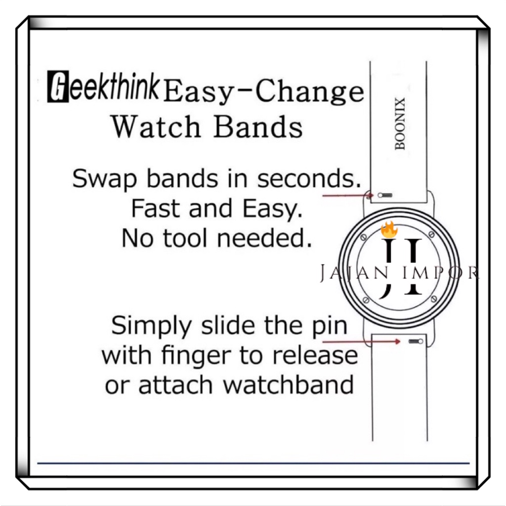 Tampilan jam pada gambar hanya untuk sampel gambar dan bukan produk yang dijual. Produk yang dijual adalah Strap dan PIN QUICK RELEASE