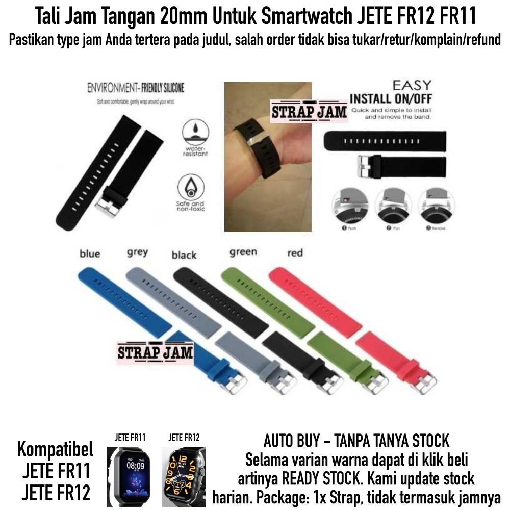 Detail Strap Smartwatch Jete FR12 FR11 - Tali Jam 20mm Silikon Polos Silver Buckle