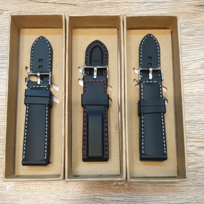 Strap tali jam tangan silicon silikon list merah putih polos universal ukuran 20mm 22mm gesper stainless steel