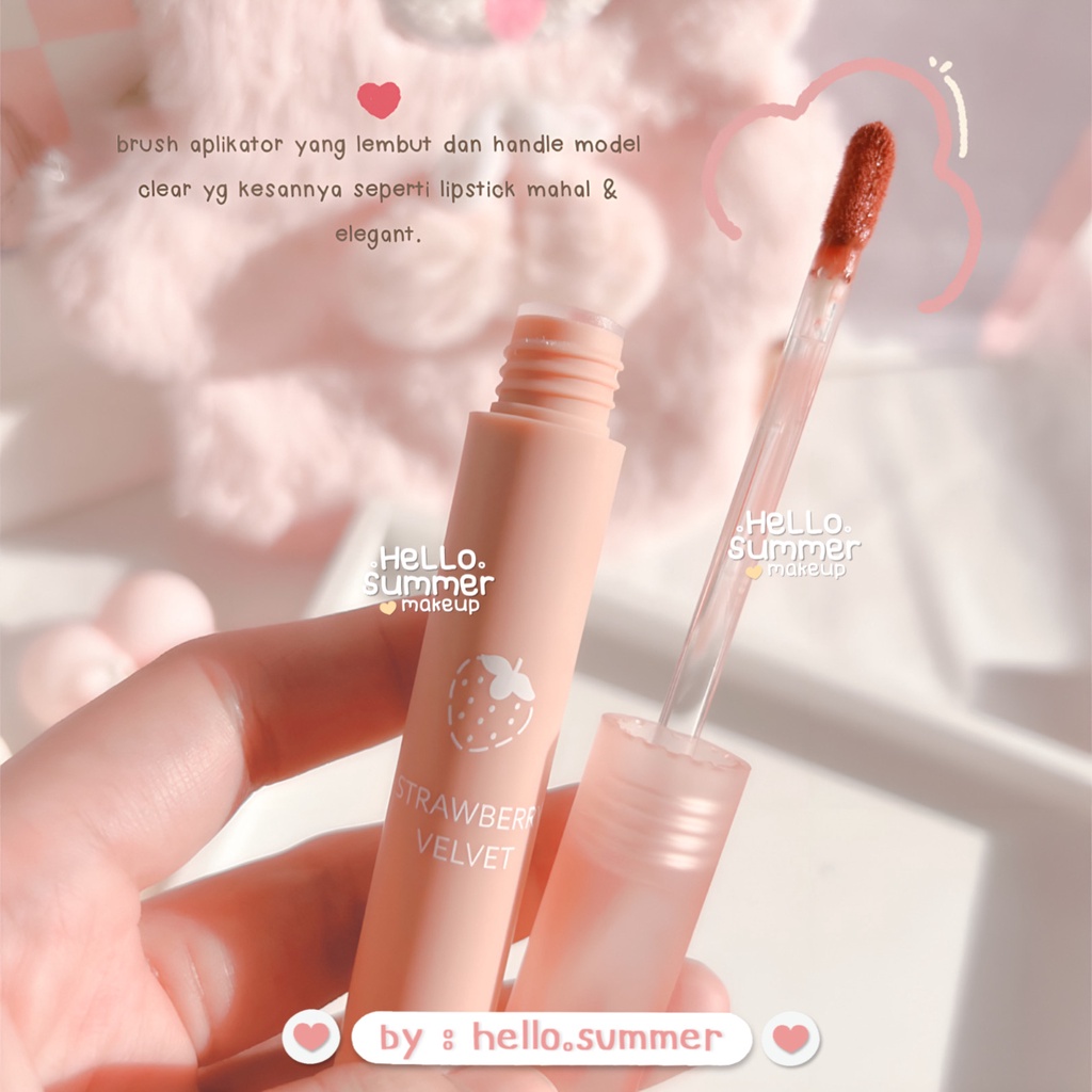 Detail Strawberry Velvet Moisturaizing Matte Lipgloss Lipcream Lipstick Tahan Lama