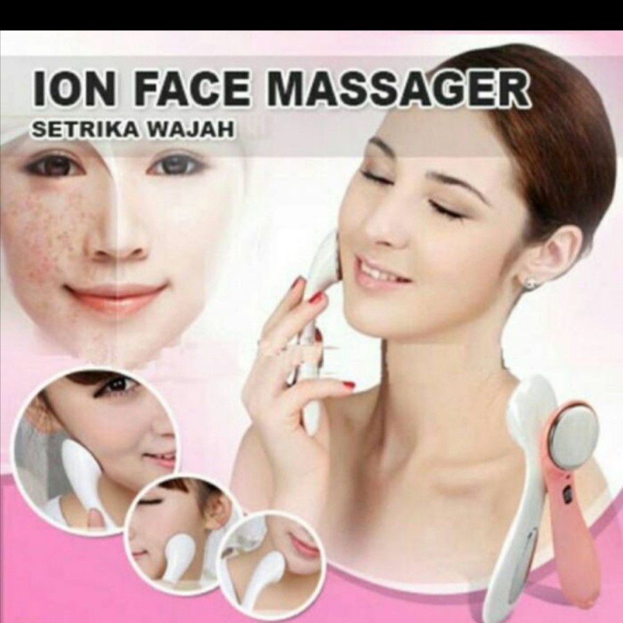 Mau memiliki kulit wajah sempurna br/ ANDA WAJIB MEMILIKI SETRIKA WAJAH ION INI ! br/ br/ Cukup 3menit br/ Cukup 3x dalam sehari br/ br/ Membuat fungsi serum,eye cream, cream,cleanser koleksi anda bekerja lbh sempurna dan maximal br/ Memiliki teknologi tinggi mikroelektronik, dapat memasukkan komponen nutrisi pada lapisan basal, meningkatkan energi sel, sel mempercepat, gerakan dan metabolisme, biarkan kulit segar, putih dan lembut. Jika dikoordinasikan dengan produk yang sesuai, efeknya akan lebih baik. br/ Dengan kelengkapan br/ Micro-getaran & + induksi Ion (pembersihan): menciptakan arus listrik dengan ion + untuk benar-benar menghilangkan kotoran tidak dapat dilepas secara normal, seperti debu dan logam berat. Digunakan bersama-sama dengan toner br/ Micro-getaran &-Ion induksi : menciptakan arus listrik dengan ion-ion untuk penyerapan sempurna ke dalam produk perawatan kulit lapisan kulit. Digunakan bersama-sama dengan aerum/cream wajah Anda dengan menggabungkan getaran fisik pijat dan Ionic br/ manfaat: br/ 1 Dengan fungsi ion positif, dapat membersihkan kulit kita dengan produk perawatan kita lbh sempurna br/ 2 Dengan ion negatif, menyerap secara maximal nutrisi produk perawatan kulit ke dalam sel secara terus-menerus untuk menjaga fleksibilitas dan kekuatan sel. br/ 3 Melalui pijat getaran, membuat rileks kulit kita, mempercepat sirkulasi darah, dan meningkatkan metabolisme. br/ 4 Menghapus kulit keriput, pemulihan elastisitas kulit dan membuat kulit wajah lbh bersih berkilau br/ Frekuensi getaran: 8500RPM br/ Power: DC3V CR-2032 br/ br/ Cara pemakaian : br/ Mulailah dengan tombol plus yang akan mengeluarkan kotoran yang tidak terlihat oleh mata, usapkan ke seluruh daerah kulit wajah anda sampai merata. Kemudian ubah ke tombol min dan usapkan cream wajah anda untuk memaksimalkan kerja obat dalam wajah anda. br/ Rasakan dalam waktu singkat kulit wajah anda akan terlihat bersih