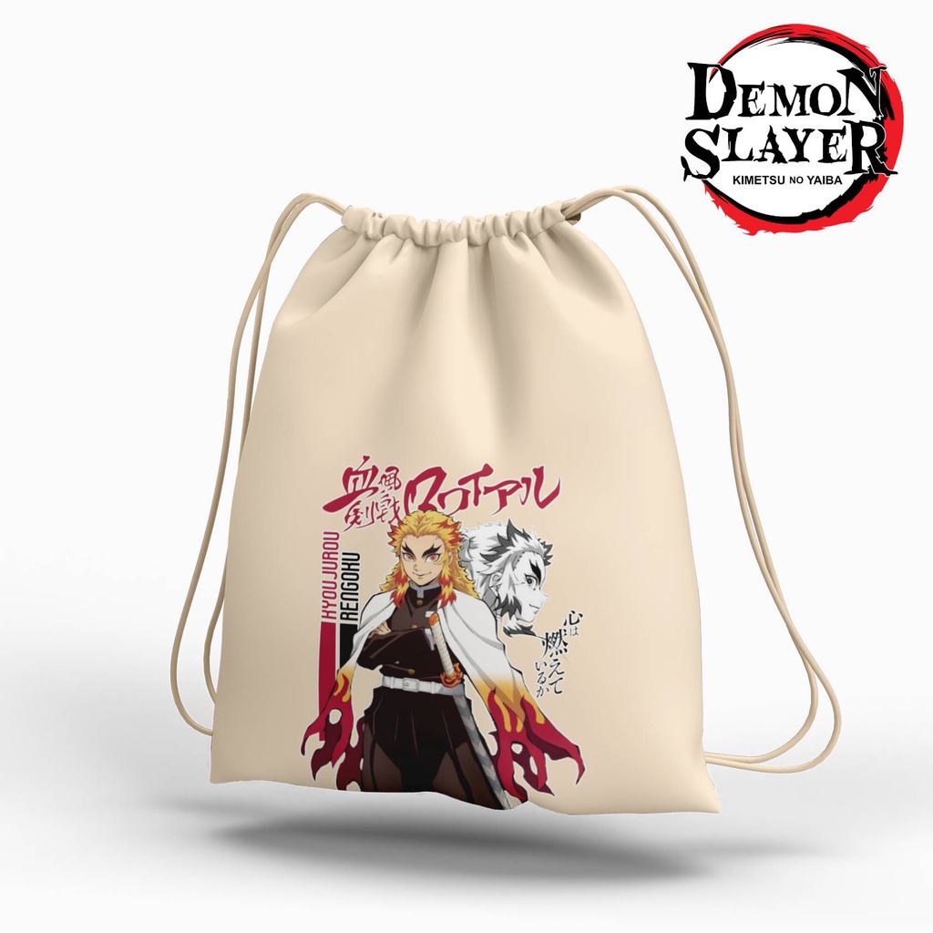 Detail Stringbag Anime Demon slayar kimetsu no yaiba Rengoku tas serut canvas premium tas string bag totebag