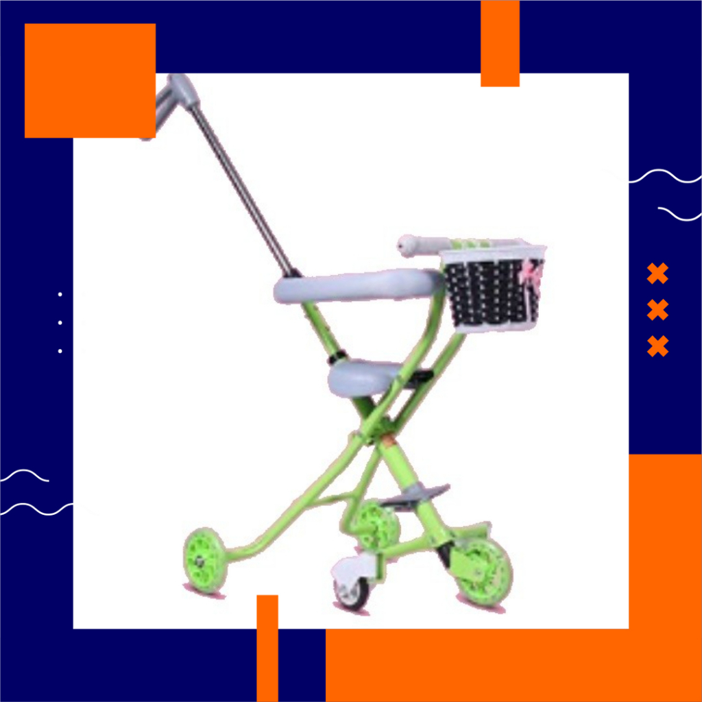 - Fitur Ekstra : Adjustable Handle, Large Basket, Guard Rail, Comfort Saddle dan Flash Wheel