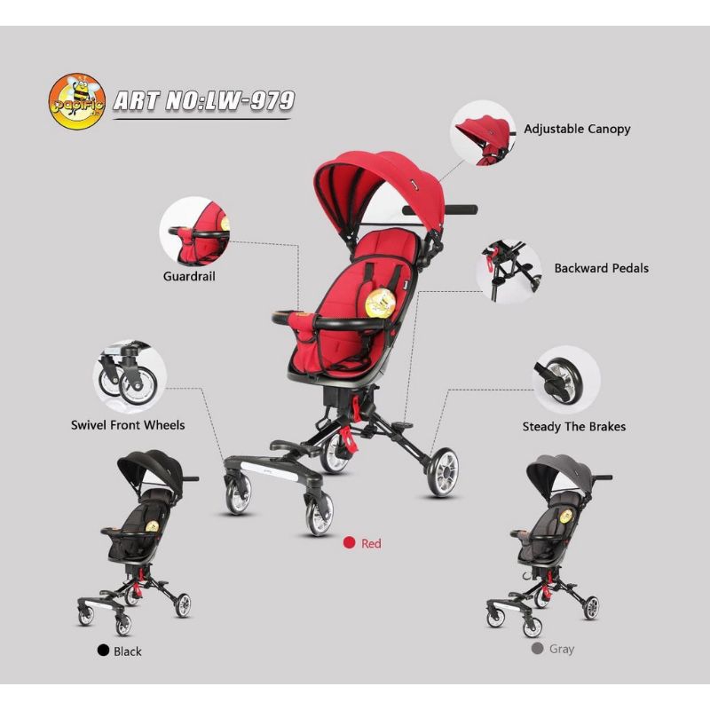SPESIFIKASI: - 2 Arah : menghadap ibu atau menghadap depan - Cabin size - Desain model dengan konsep Elegan - Pijakan kaki untuk Front Facing (Hadap depan) ataupun Mother Facing (Hadap Ibu) - Kursi yang lebar untuk kenyamanan si anak - Dilengkapi pedal Rem - Ban karet - Bisa dilipat dan rangka kokoh - Kursi bisa diputar 360 derajat - Mudah dilipat - Ringkas dan portable bisa dibawa dengan sepeda motor - Beban Maksimum 35kg