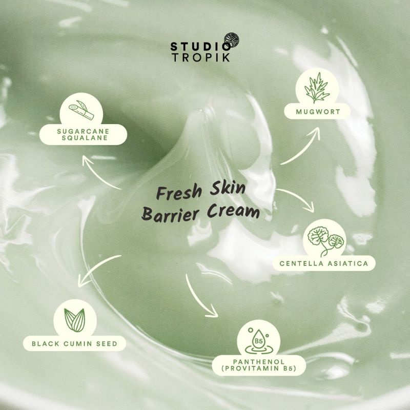 Studio Tropik Skin Barrier Cream adalah moisturizer sebagai ‘cherry-on-top’ skincare routine mu. Digunakan di tahap akhir skincare, Skin Barrier Cream adalah moisturizer yang berfungsi untuk mengunci kelembaban kulit dan memperkuat skin barrier untuk menjaga kesehatan kulit #KunciKulitKuat.