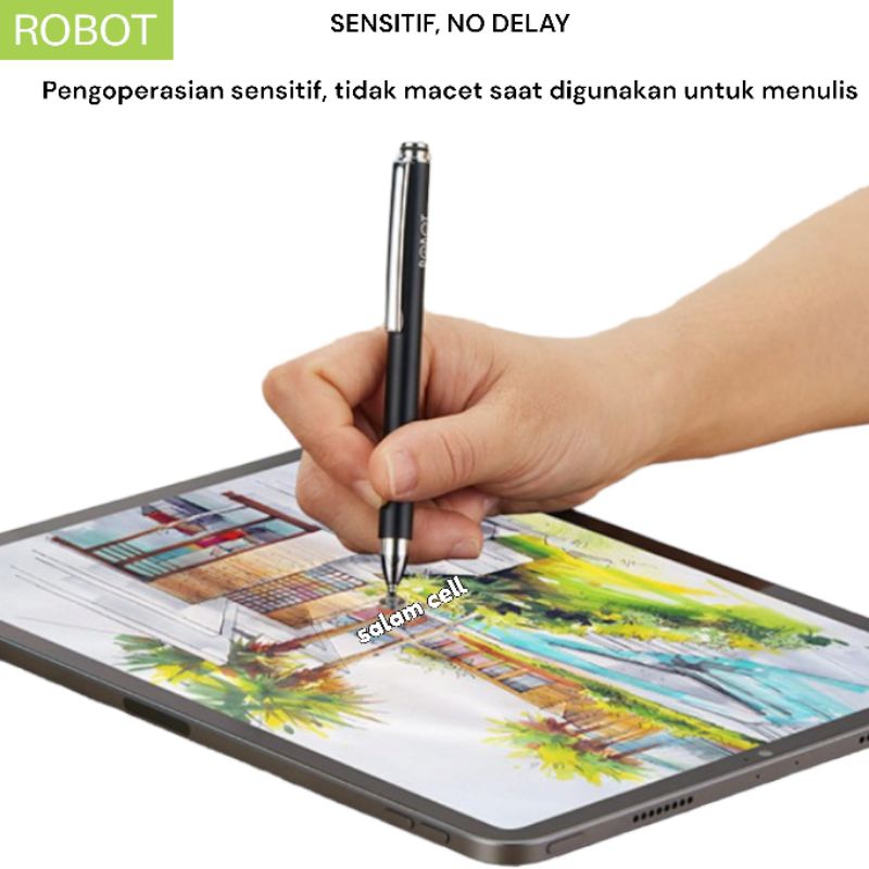 Handphone & Aksesoris > Handphone & Tablet Aksesoris > Stylus > STYLUS PEN Robot RSP02 Universal 2 in 1 Capacitive for Mobile and Tablet PC ORIGINAL garansi Resmi