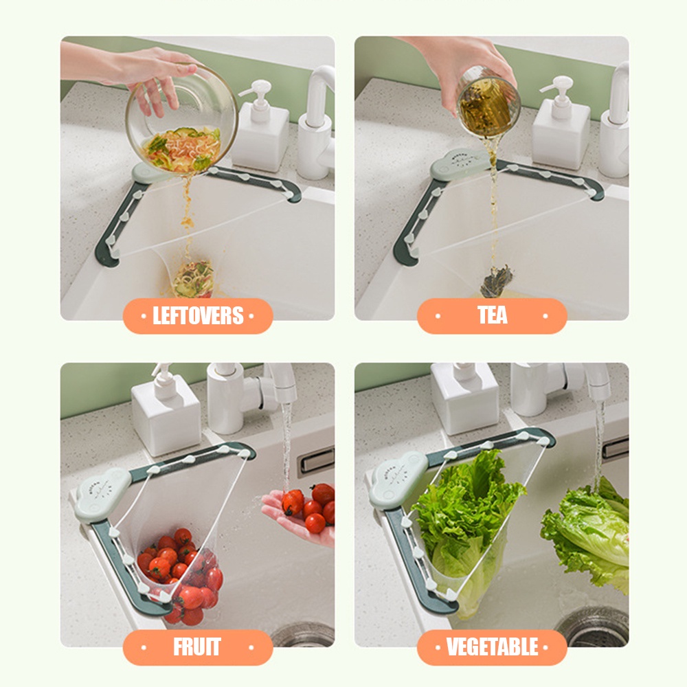 Perlengkapan Rumah > Peralatan Masak > Saringan > Sudut Wastafel Segitiga Rak Filter Drainase Sampah Mesh Rak Tas Sayur Buah Saringan Keranjang Foldable Waste Garbage Net Shelf Aksesoris Dapur Rumah Tangga