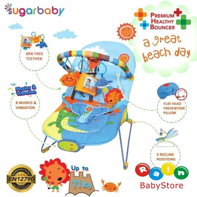 Fitur, Kelebihan: · Terdapat mainan edukasi untuk meningkatkan kemampuan otak si kecil · Flat Head Prevention Pillow (bantal anti peyang) khusus untuk mendukung kepala bayi · Tersedia 8 musik & getaran membuat si kecil senang dan ceria · Dilengkapi teether(mainan untuk di gigit) bebas dari bahan beracun (BPA Free)sehingga aman untuk si kecil · Bar mainan dan kain Seat pad (tempat duduk) bisa dilepas untuk dibersihkan · Terbuat dari kain lembut yang aman untuk kulit bayi yang sensitif · Terdapat 3 titik safety belt untuk keamanan ekstra · Kaki penyangga non-slip sehingga bouncer tidak mudah berpindah tempat · Bouncer sangat ringan sehingga mudah dibawa ke mana saja · Telah teruji dan memenuhi standar keamanan Eropa EN12790 sehingga sudah terjamin kualitasnya