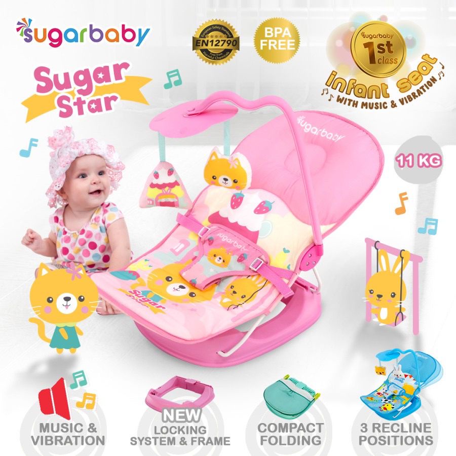 ** 3 posisi (duduk rebah tidur), tidak bisa ayun ** Produk baru dari Sugar Baby yang dinantikan telah hadir. Produk berupa kursi lipat dengan bentuk ergonomik ini dirancang serba guna, selain digunakan untuk waktu makan bayi, tidur bayi, saat travelling, produk ini juga sangat cocok digunakan saat bermain bagi anak anda. Dengan fitur yang lengkap maka produk ini akan selalu membuat bayi ceria sepanjang hari.