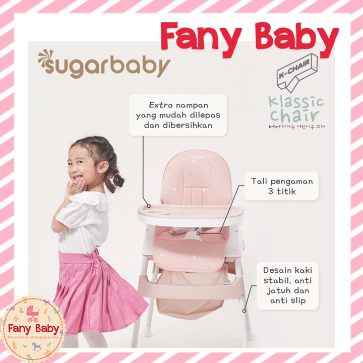 Sugarbaby K-Chair Klassic Chair dengan 6 fungsi dan desain klasik ala Korea khas Sugarbaby agar kegiatan makan dan bermain si Kecil lebih asyik dan nyaman.