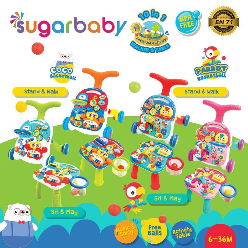Sugar Baby 10IN1 Premium Activity Walker & Table adalah mainan alat bantu bayi berjalan, yang berifungsi untuk membantu menjaga keseimbangan langkah si Kecil saat belajar berdiri dan berjalan. Dapat diubah menjadi meja serta dilengkapi dengan mainan-mainan yang menambah keceriaan si Kecil dan untuk megembangkan keterampilan motorik dan rasa ingin tahu si Kecil.