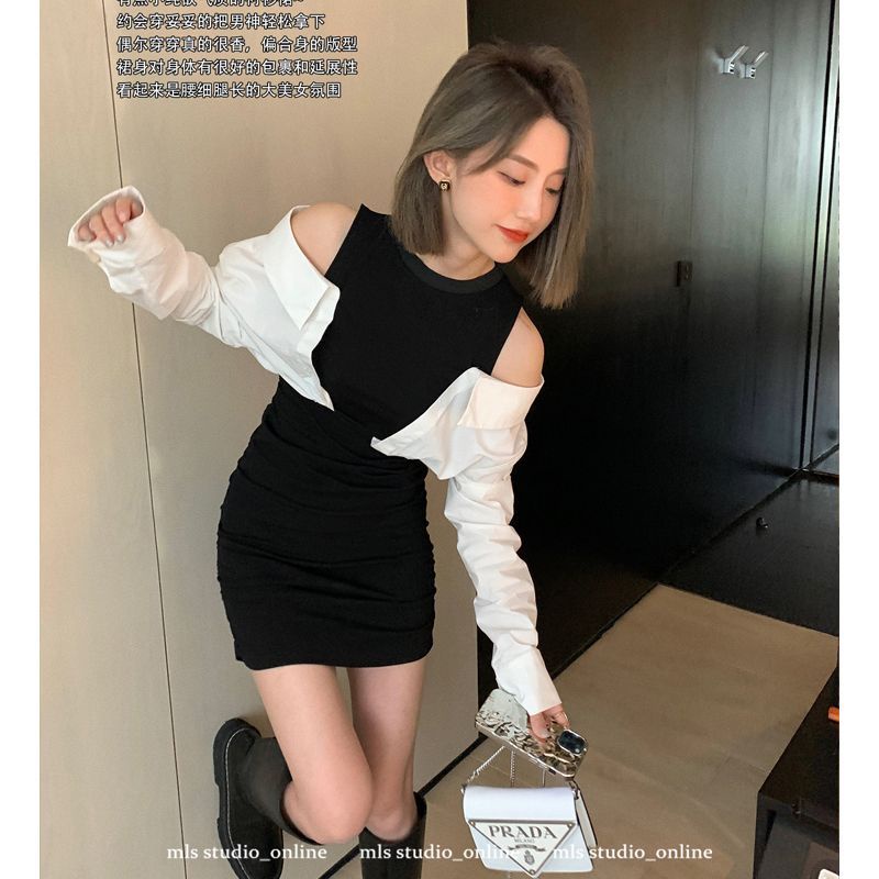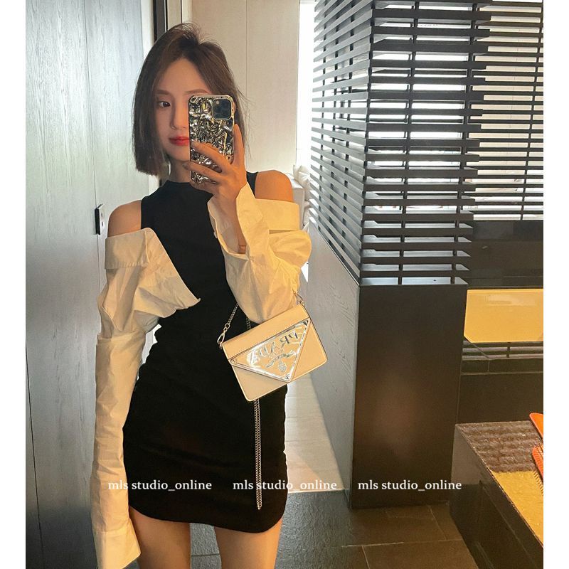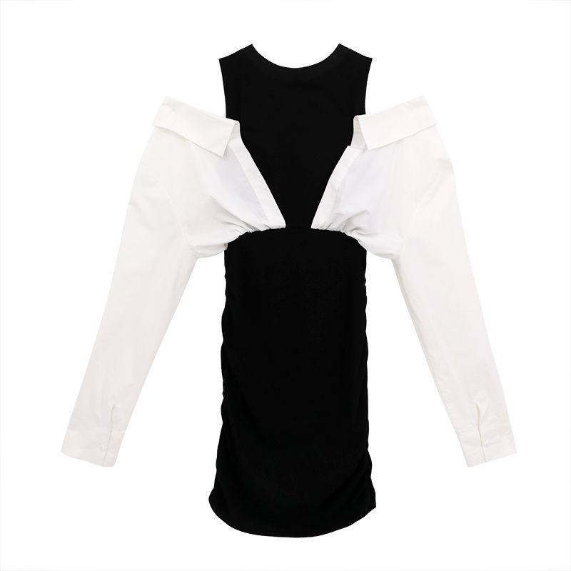 Pakaian Wanita > Set > Set Wanita > Suhao Bahasa Perancis rasa desain ceruk strapless tas pinggul gaun musim panas wanita splicing kualitas tinggi temperamen palsu dua potong kemeja rok