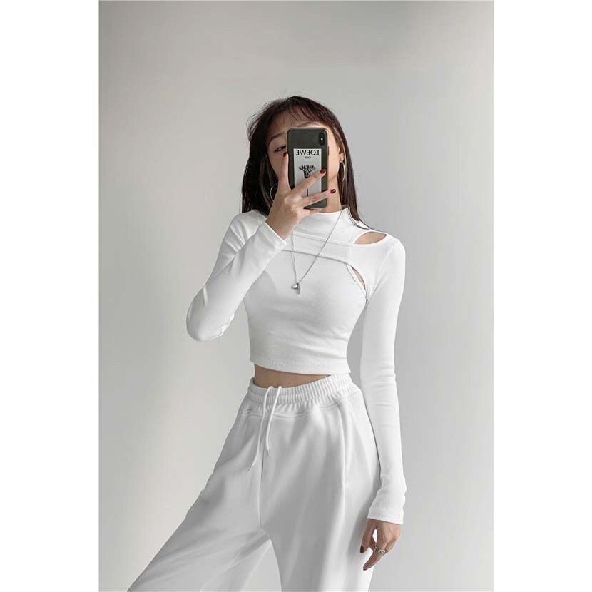 ♈❁▬Suhao Hati-hati Mesin Rasa Desain Berongga Strapless Kemeja Wanita Pendek Baru Bagian Pusar T-shirt Diri Budidaya Palsu Dua potong Top Pasang