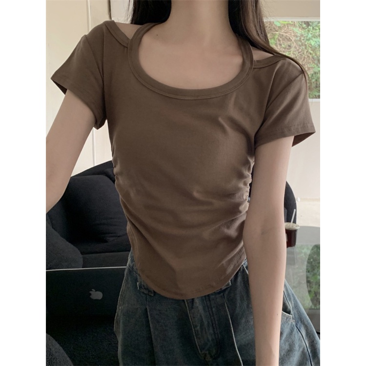 Pakaian Wanita > Atasan > Kaus > Suhao kecil menggantung leher hitam lengan pendek T-shirt wanita musim panas self-budidaya keinginan murni gaya chic pendek top rasa desain ceruk kaos impor wanita kaos wanita gaya korea lengan pendek kaos pendek perempuan