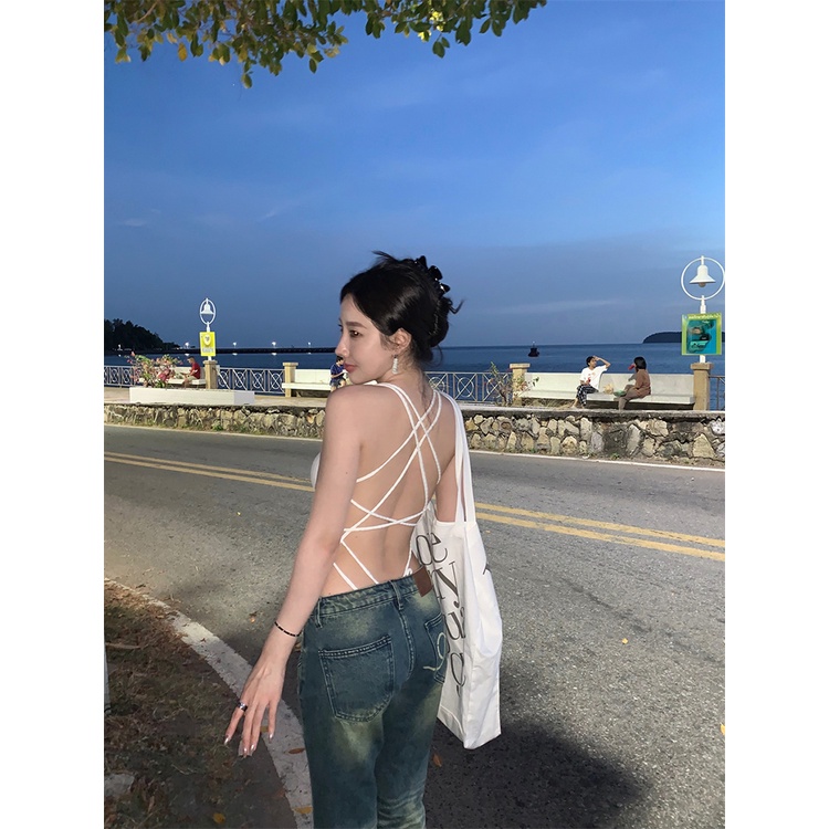 ✹Suhao manis hot gadis putih kamisol wanita musim panas keinginan murni gaya buka kembali desain rasa budidaya diri seksi one-piece top pakaian luar crop top seksi tank top wanita motif