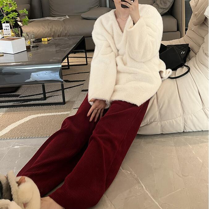 Pakaian Wanita > Pakaian Tidur & Piyama > Piyama > Suhao musim dingin dengan seluruh rangkaian gaya wewangian kecil wanita, temperamen kelas atas, sosialita, sweter dua potong susu goreng yang mengurangi usia