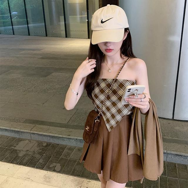 Suhao one-piece suit gaya manis dan pedas musim panas tiga potong set wanita baru keinginan murni hot girl rasa desain ceruk bagian tipis kardigan awal musim gugur